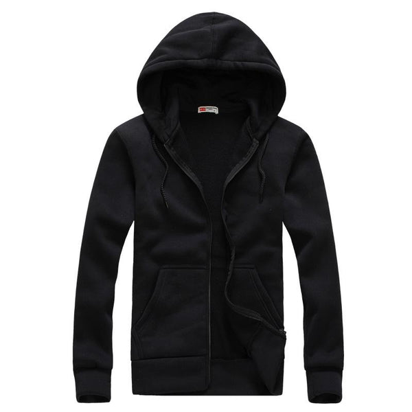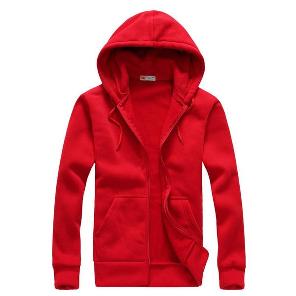 Hoodie with two oblique side pockets with no closure and round drawstring in various colors. Has fleece lining.