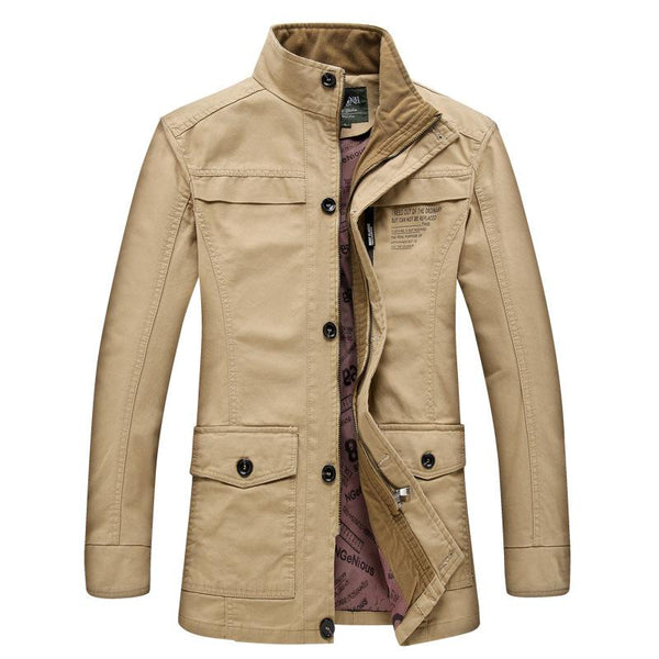 Regular-fit jacket with zipper front closure with snap button placket, featuring a funnel neck, twin flap pockets, text print on chest and button cuffs.