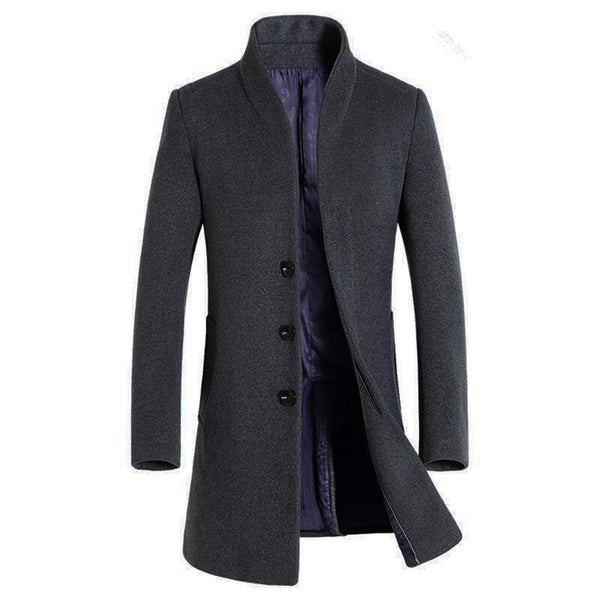 Step into the colder seasons in this luxurious overcoat, made from wool-rich fabric. Buttoned cuffs and standing collar lock in warmth, while a button front keeps out the elements.