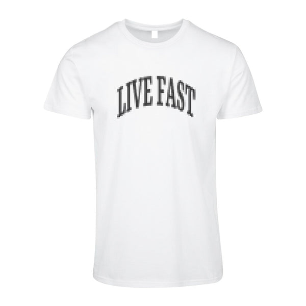 Chill in a comfy and solid style with the Live Fast T-Shirt. This crew neck tee offers a pure cotton construction and a bold script screen printed on the chest.