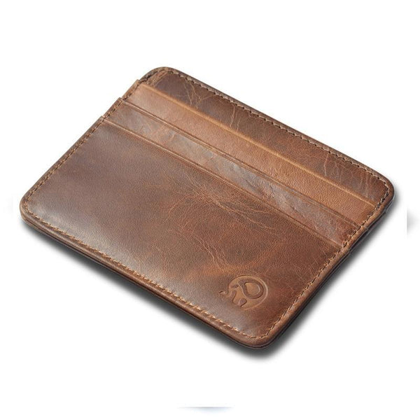 Small credit card holder made of high quality genuine cow leather. Features three card holders, an ID holder and an inner pouch as a cash compartment.
