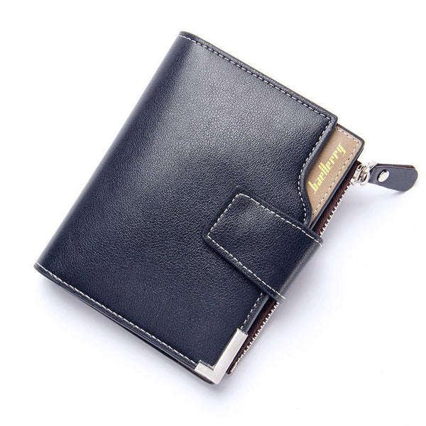 A short wallet with snap-button closure, crafted from high quality faux leather and soft lining. Features a zip pouch, two ID slots, multiple card holds and slip pockets.