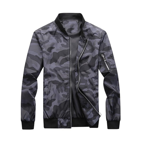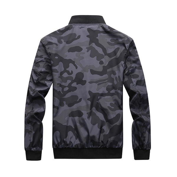 Camo coloring brings easy-to-wear style to the Pollogie™ Gazzo Camo Jacket, a camouflage print bomber jacket done smartly in a matte finish with sporty ribbing at the collar, cuffs, and hem.