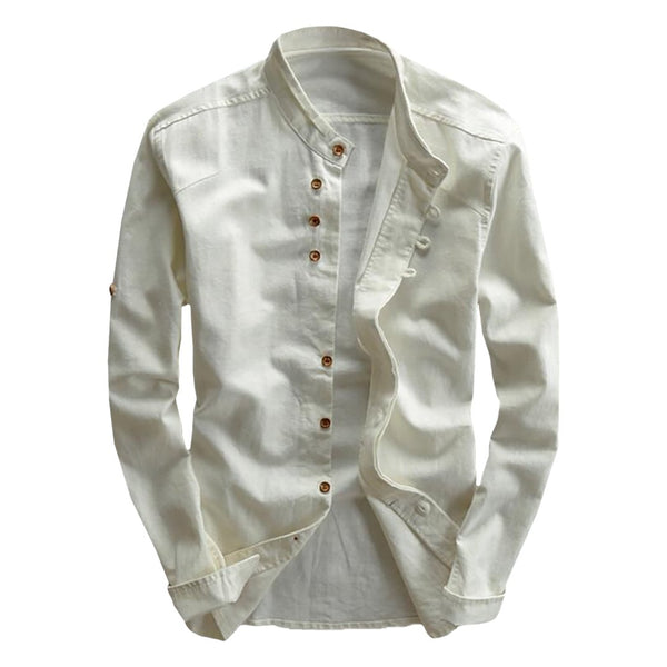 A simple and classic staple for any stylish man, our Pollogie™ Long Sleeve Mandarin Collar Cotton Shirt is the ideal choice for those warm days when comfort is key.